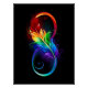 Artistically drawn infinity symbol with beautiful rainbow feather on white background. Tattoo style.