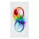 Artistically drawn infinity symbol with beautiful rainbow feather on white background. Tattoo style.