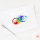 Artistically drawn infinity symbol with beautiful rainbow feather on white background. Tattoo style.