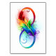 Artistically drawn infinity symbol with beautiful rainbow feather on white background. Tattoo style.