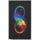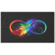 Artistically drawn infinity symbol with beautiful rainbow feather on white background. Tattoo style.