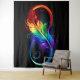Artistically drawn infinity symbol with beautiful rainbow feather on white background. Tattoo style.