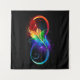 Artistically drawn infinity symbol with beautiful rainbow feather on white background. Tattoo style.