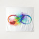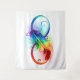 Artistically drawn infinity symbol with beautiful rainbow feather on white background. Tattoo style.