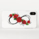 infinity symbol with red roses and black stalks on a white background. Design with roses. Tattoo style. Gothic style. Tribal graphics. Style sketch.