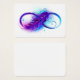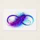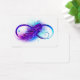 Infinity symbol with a beautiful feather painted in purple and blue bright colours on white background.