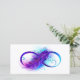 Infinity symbol with a beautiful feather painted in purple and blue bright colours on white background.