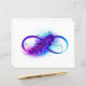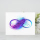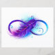 Infinity symbol with a beautiful feather painted in purple and blue bright colors on white background.