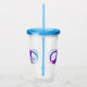 Infinity symbol with a beautiful feather painted in purple and blue bright colors on white background.