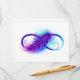 Infinity symbol with a beautiful feather painted in purple and blue bright colors on white background.