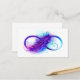Infinity symbol with a beautiful feather painted in purple and blue bright colours on white background.