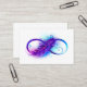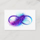 Infinity symbol with a beautiful feather painted in purple and blue bright colours on white background.