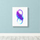Infinity symbol with a beautiful feather painted in purple and blue bright colours on white background.