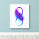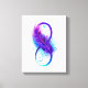 Infinity symbol with a beautiful feather painted in purple and blue bright colours on white background.