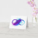 Infinity symbol with a beautiful feather painted in purple and blue bright colors on white background.