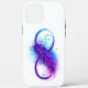 Infinity symbol with a beautiful feather painted in purple and blue bright colours on white background.