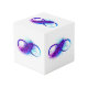 Infinity symbol with a beautiful feather painted in purple and blue bright colors on white background.