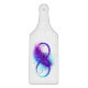 Infinity symbol with a beautiful feather painted in purple and blue bright colors on white background.