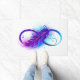 Infinity symbol with a beautiful feather painted in purple and blue bright colors on white background.