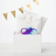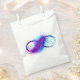 Infinity symbol with a beautiful feather painted in purple and blue bright colours on white background.