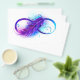 Infinity symbol with a beautiful feather painted in purple and blue bright colors on white background.