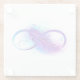 Infinity symbol with a beautiful feather painted in purple and blue bright colours on white background.