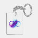 Infinity symbol with a beautiful feather painted in purple and blue bright colours on white background.
