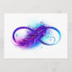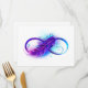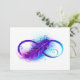 Infinity symbol with a beautiful feather painted in purple and blue bright colours on white background.