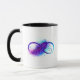 Infinity symbol with a beautiful feather painted in purple and blue bright colours on white background.