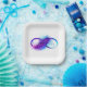 Infinity symbol with a beautiful feather painted in purple and blue bright colours on white background.