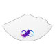 Infinity symbol with a beautiful feather painted in purple and blue bright colours on white background.