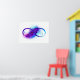 Infinity symbol with a beautiful feather painted in purple and blue bright colours on white background.