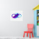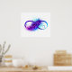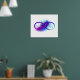 Infinity symbol with a beautiful feather painted in purple and blue bright colours on white background.
