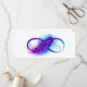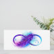 Infinity symbol with a beautiful feather painted in purple and blue bright colours on white background.