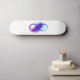 Infinity symbol with a beautiful feather painted in purple and blue bright colours on white background.