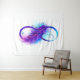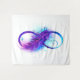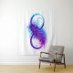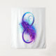 Infinity symbol with a beautiful feather painted in purple and blue bright colors on white background.