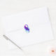 Infinity symbol with a beautiful feather painted in purple and blue bright colours on white background.