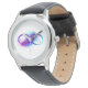 Infinity symbol with a beautiful feather painted in purple and blue bright colours on white background.