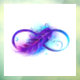 Infinity symbol with a beautiful feather painted in purple and blue bright colours on white background.