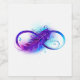 Infinity symbol with a beautiful feather painted in purple and blue bright colours on white background.