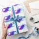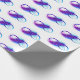 Infinity symbol with a beautiful feather painted in purple and blue bright colours on white background.