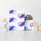 Infinity symbol with a beautiful feather painted in purple and blue bright colors on white background.
