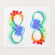Multicolor infinity symbol with rainbow bright jellyfish decorated with long tentacles on white background. Rainbow jellyfish.