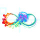 Multicolor infinity symbol with rainbow bright jellyfish decorated with long tentacles on white background. Rainbow jellyfish.