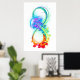 Multicolor infinity symbol with rainbow bright jellyfish decorated with long tentacles on white background. Rainbow jellyfish.