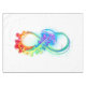 Multicolor infinity symbol with rainbow bright jellyfish decorated with long tentacles on white background. Rainbow jellyfish.