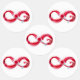 Infinity symbol of continuous stream of red wine pouring into glass wine glass on white background.