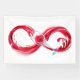Infinity symbol of continuous stream of red wine pouring into glass wine glass on white background.