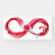 Infinity symbol of continuous stream of red wine pouring into glass wine glass on white background.