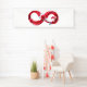 Infinity symbol of continuous stream of red wine pouring into glass wine glass on white background.